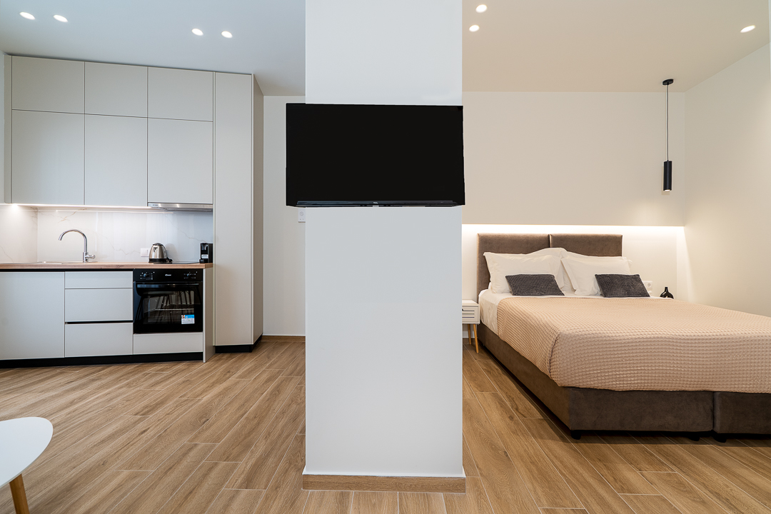 Welcome to your home-away-from-home! This newly refurbished studio apartment is ideal for couples or solo travellers. Sunlit and modern, it features a fully equipped kitchen, comfy lounge with a 32-inch smart TV, Wi‑Fi, and a small balcony. Situated in a quiet city-centre neighborhood, away from street noise but close to all the action, this apartment is perfect for a quality stay!